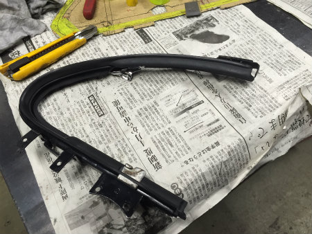 続いて、  三角窓 フレーム を  取り付ける