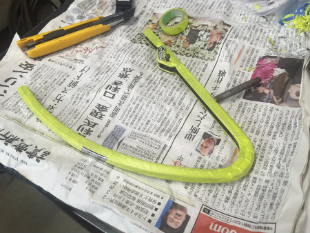 ゴム を  溶かして  接着する   薬剤 を  使いまして