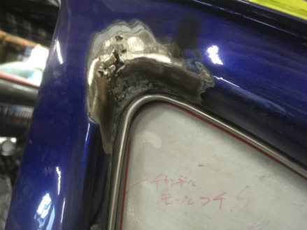 削って  薄くなった 鉄板 に、  溶接 したら