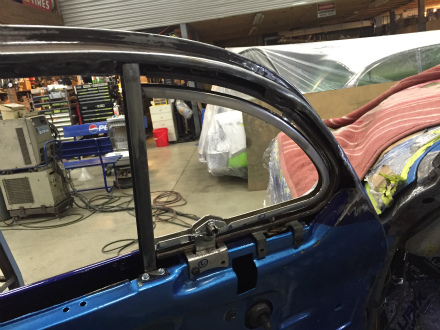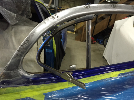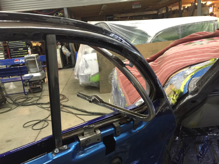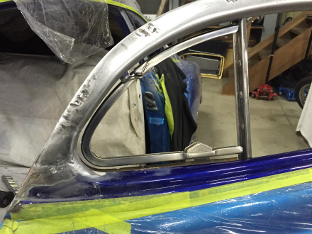 三角窓 周り の  加工 を 終え、  次 は  サイド ガラス に  進みます