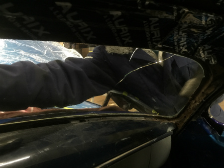 次は、 フロント ガラス の 内側 の トリム に 進みます