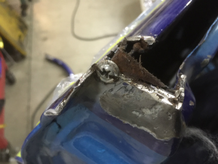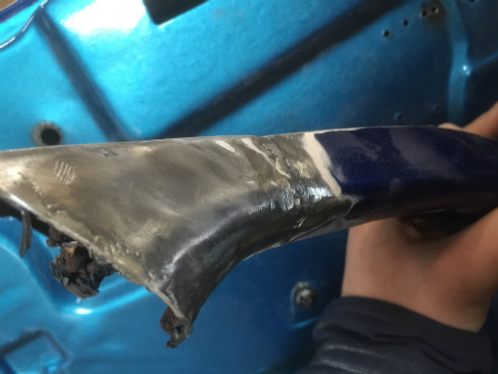 鉄 が 薄くなってる、 以前 の 溶接跡 周辺 は