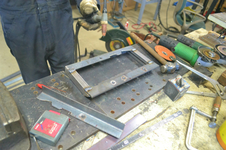 アングル材 を 切り出しまして、 最小限 の 枠組み を 作り