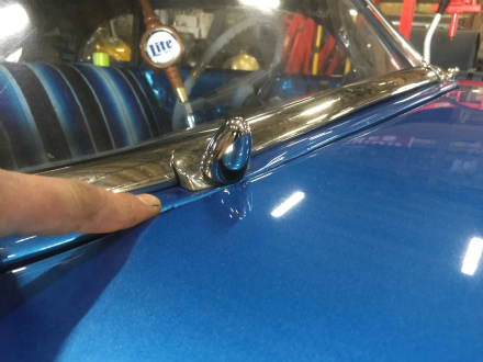 フロント ガラス の 下側 の、 ワイパー カウル 付近 が