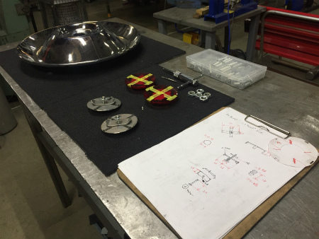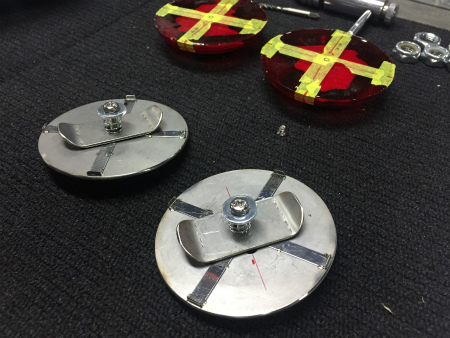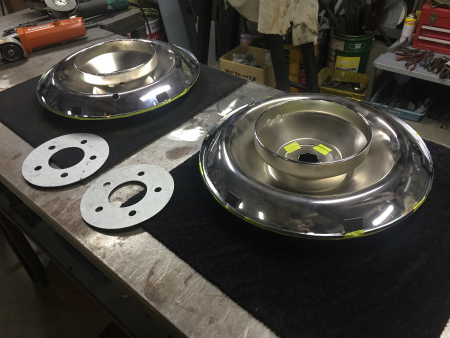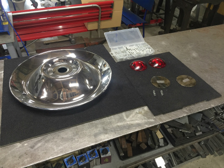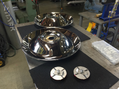 加工 された、 オリジナル ハブ キャップ の 裏側 に