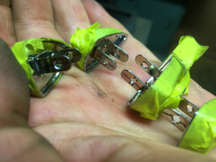 爪 に 穴 を 開けて、 ひも を 通して