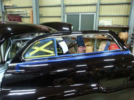 続いて、 サイド ガラス の 取り付け に 進みまして