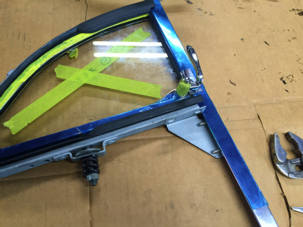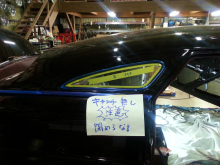 こんな 感じ で、 三角窓、 サイド ガラス を 取り付けまして