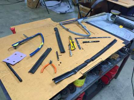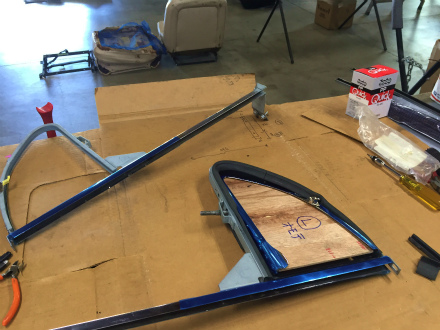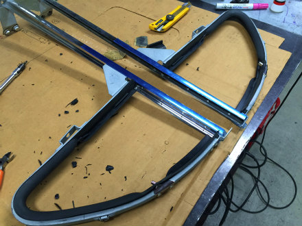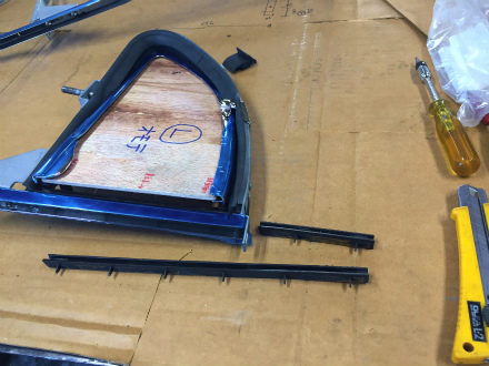 三角窓 ガラス 周り を 組み終えた サッシ を
