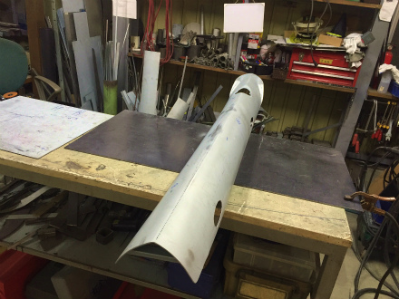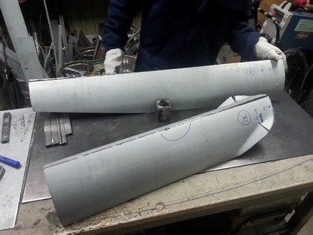 断面 が   半円 に   丸めた   鉄板 を   2枚  用意 しまして