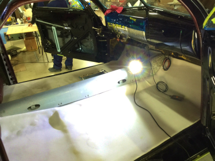 裏 に  補強 と、  フット ランプ 取り付け の  台座 を  取り付けし