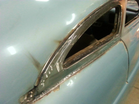 クォーター ガラス 周り の  BODY パネル を、  全部  造り直してまして