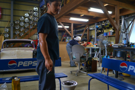 サイド ガラス 製作 作業 に  来てくれた、   K藤 師範 は