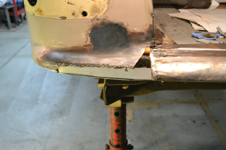 テール ランプ 下 の  外板 と、 トランク の  床 が