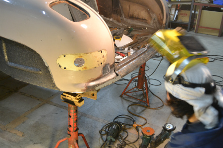 S庭さん が  元の 形の、 極限まで  鉄板を  修正する