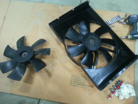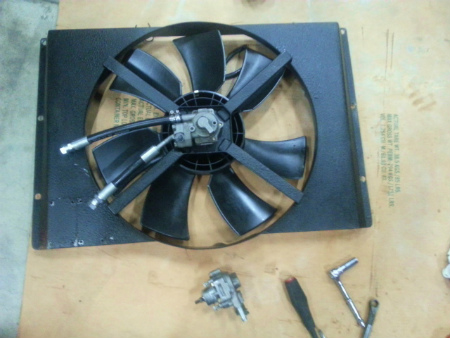 もう 1個  油圧 ファン を  用意 して、  交換 しまして