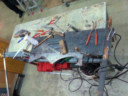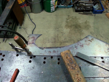 型紙 を 取り、 鉄板 を 切り出したら、