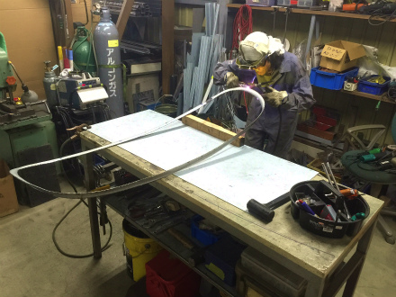 なるべく 歪み が 出ないよう、 溶接 して いきまして