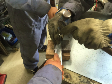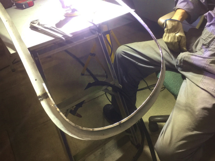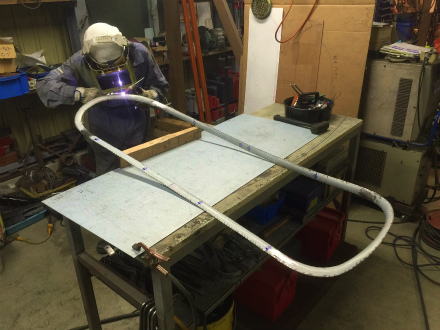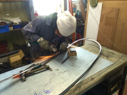 歪み を 修正 したら、 全周 溶接 に 進みます。