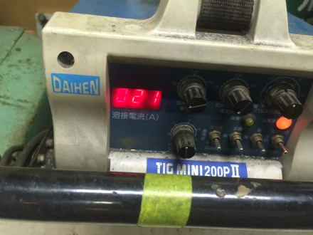 薄い 鐵板 なので、 溶接 の 電流値 も