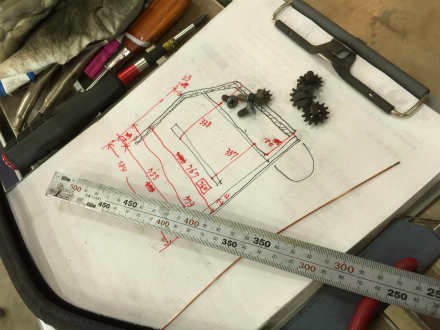 型紙 を 作りまして、 それを 基 に コンパネ を 切り出したら