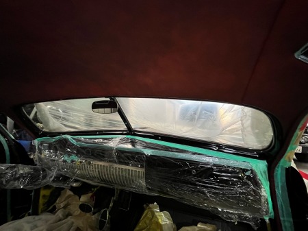 付いてままだと、Aピラー部分が張れないので