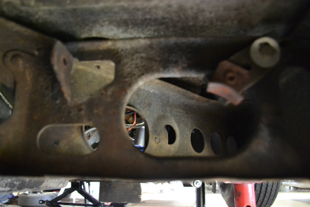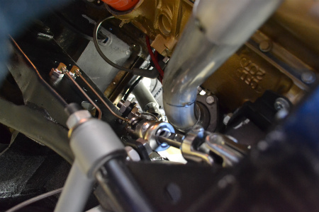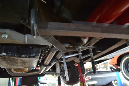 クロスメンバー と、 オイルパン の 隙間 を 通します。