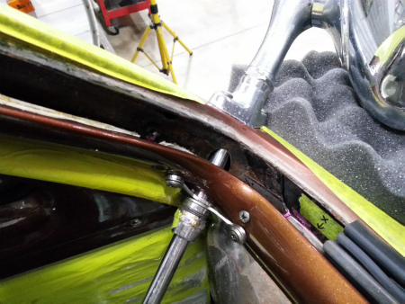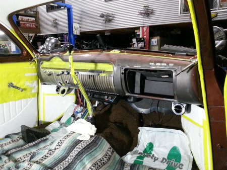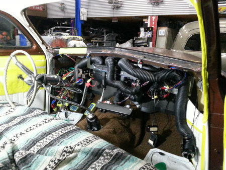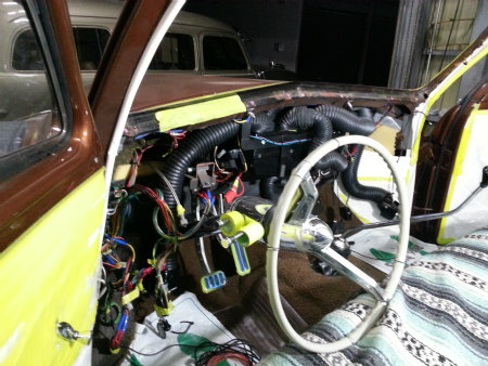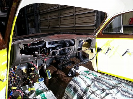 ダッシュ内 に エアコン ユニット や 配管、 ダクト を 組んでいる