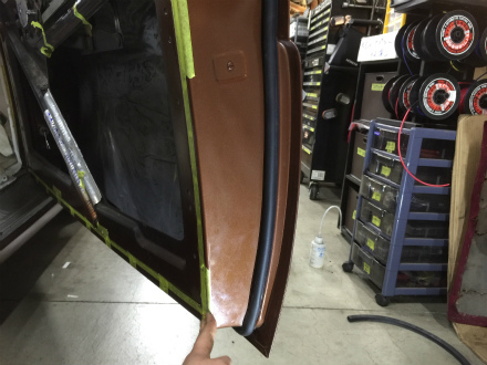運転席側 の  ドア ウェザー ストリップ  の  施工 を  進めて いたら