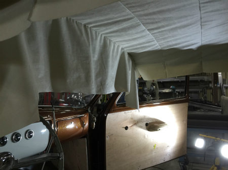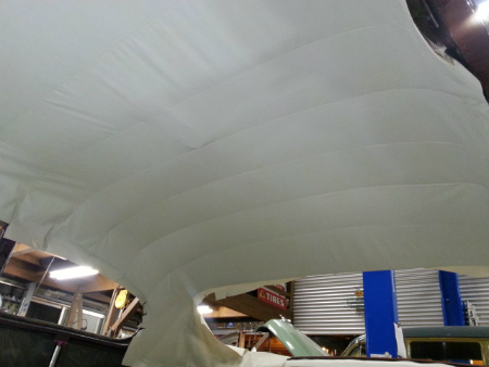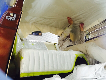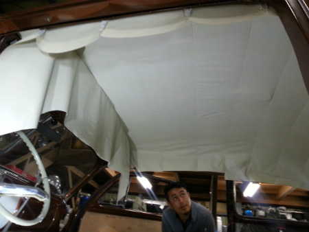 ヘッド ライナー を 施工中。