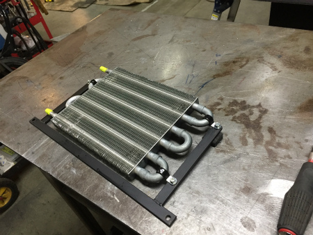 ラジエーター、  コンデンサー、  クーラー を  取り付け。