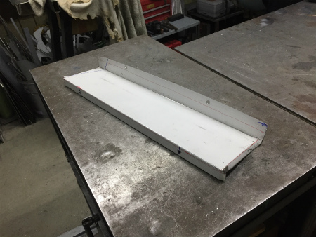 アルミ板 を  切り出し、   サイズ を  合わせて  折り曲げまして