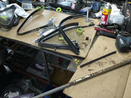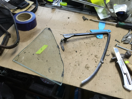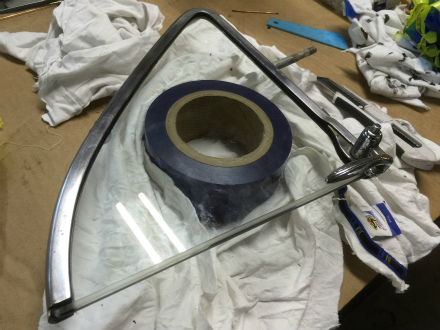 三角窓、  サイド ガラス 周り の  シール 交換 が  完了