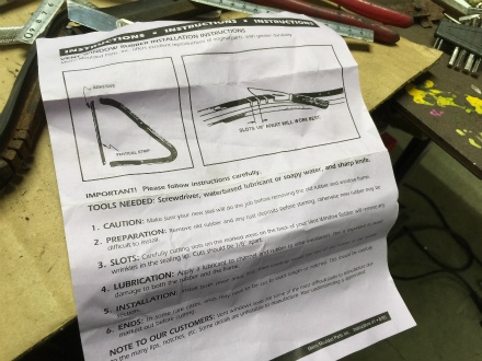 板ゴム も  ないので、  シール材 を  使い  取り付け しまして