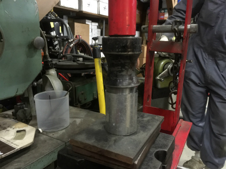 プレス機 に、 50 パイ の パイプ を 削り出した