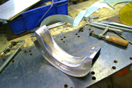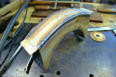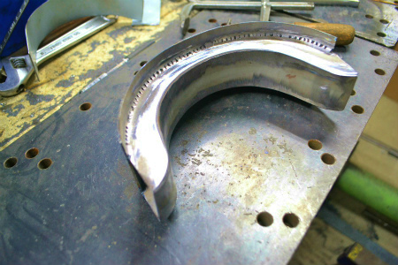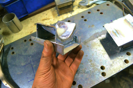 ブレス 自体 も、 ノッチ した 形状 に、 鉄板 を 貼り合わせて 作りまして
