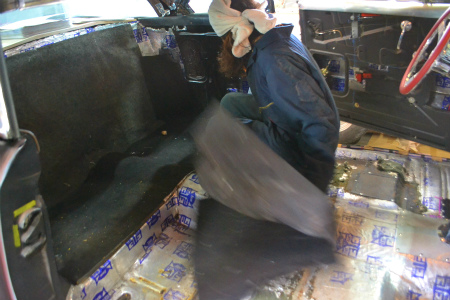 シート や、 内装 などを 全部 外して、 降ろしまして