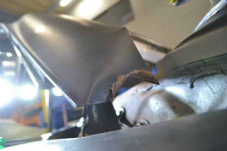 めくれ上がった、   エンジン フード の   両端 は
