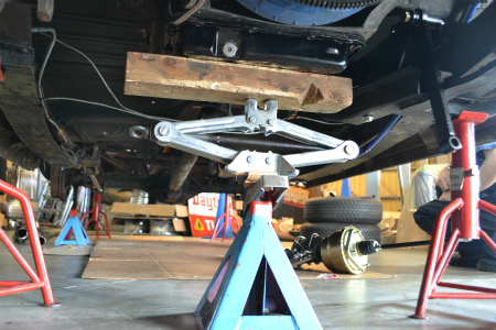 エンジン を  持ち上げて、 マフラー も  外さずに