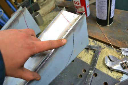 切りっぱなし の  ブレス 位置 に、   しっかり  溶接 して