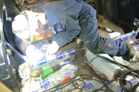 ボディ の 補強 作業中
