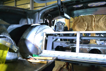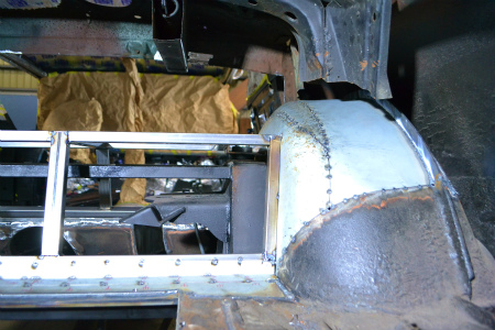トランク側、  室内側 の  やぐらに   鉄板 が  溶接 されまして