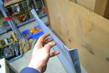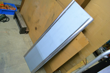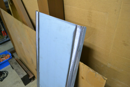 平らな 面 と、  角 の  エル部分 は  別 で  作り、  溶接 しまして