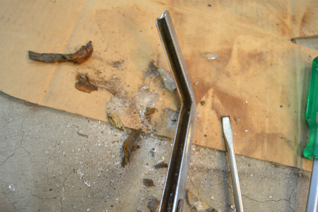 3角窓 の ガラス を 取り付ける