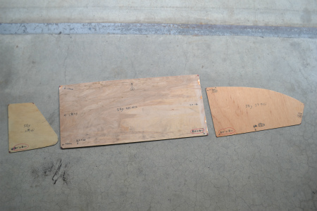 まずは ガラス に 見立てて、 ベニヤ板 を 切り出します