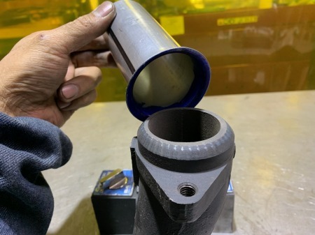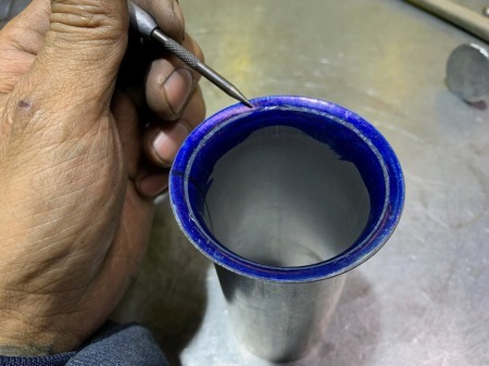 マフラーパイプの端を治具を使って