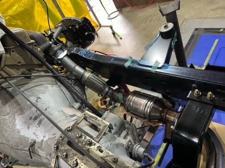 途中にフレックスジョイント、触媒と