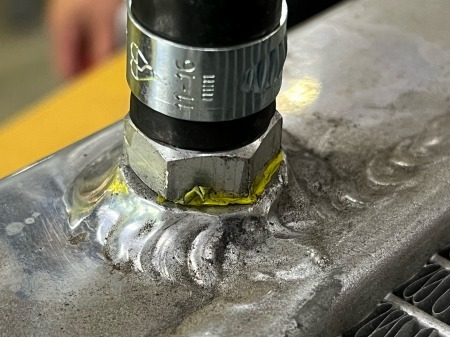 クーラーラインのフィッティング部分に