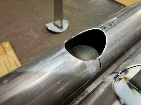 マフラーパイプも逃げ加工を施し