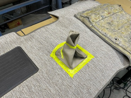 カーペットにもペダル用の穴を開けますが